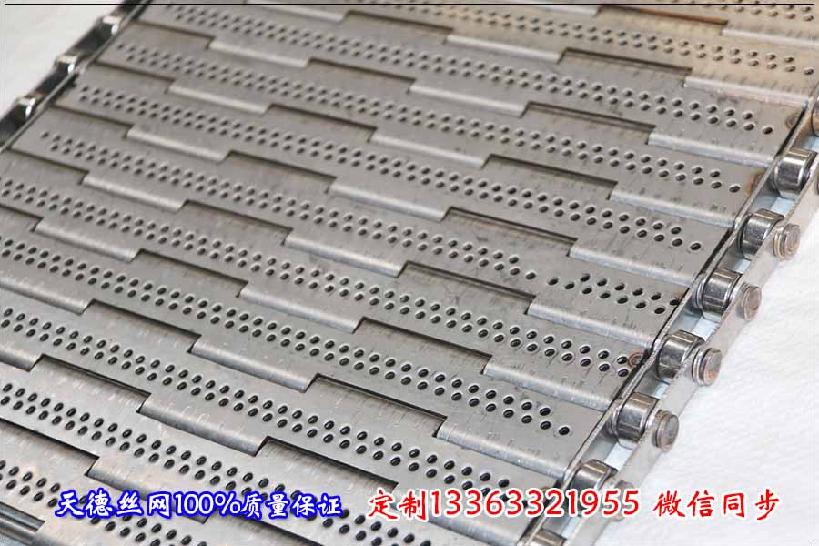 我們還要想到輸送物品重量是不是太過于重。之前有客戶在我天德公司訂購過草莓清洗機(jī)用的不銹鋼輸送帶,這位客戶和我反應(yīng)之前購買的鏈條輸送網(wǎng)帶因?yàn)榫W(wǎng)面不太平整(鋼絲編織的網(wǎng)面會(huì)有輕微凹凸)所以容易對輸送面的草莓表面因?yàn)檩p微磕碰導(dǎo)致?lián)p傷,所以要更換一種網(wǎng)面平整的輸送帶。建議客戶訂購不銹鋼輸送帶為沖孔式鏈板,這樣就能防止因?yàn)榫W(wǎng)面不平導(dǎo)致刮傷物品。在訂購不銹鋼輸送帶的時(shí)候一定要根據(jù)輸送物品和使用環(huán)境等各方面因素來選用合適的輸送帶。
