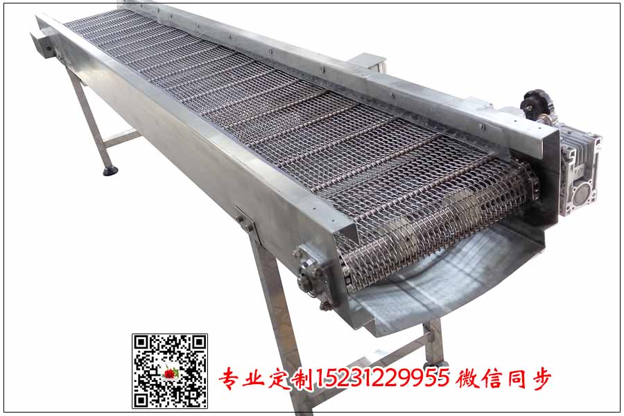 網(wǎng)帶輸送機(jī)是輸送行業(yè)必不可少的輸送設(shè)備,昨天桂林的袁總來電咨詢不銹鋼網(wǎng)帶輸送機(jī),用來輸送小食品,我公司根據(jù)袁總提供的相關(guān)資料定制具體數(shù)據(jù)如下:規(guī)定在食品行業(yè)我們采用不銹鋼304材質(zhì),機(jī)器的總寬在700毫米,總長度在5米,要求輸送機(jī)不帶腿,鏈條不銹鋼網(wǎng)帶 鏈節(jié)距為31.75毫米,不銹鋼桿直徑為8毫米,鏈桿之間的距離為200毫米,不銹鋼絲直徑為1.5毫米,網(wǎng)帶節(jié)距為30毫米,網(wǎng)帶螺距為20毫米, 配帶0.75千瓦電機(jī),帶減速機(jī)和變頻器,要求速度比為1:50??刂崎_關(guān)要求正反均可調(diào)節(jié)。 網(wǎng)帶輸送機(jī)的用途特別廣泛,不銹鋼網(wǎng)帶是輸送機(jī)中重要的配件,可以根據(jù)輸送產(chǎn)品的形狀大小加工成不同規(guī)格結(jié)構(gòu)的網(wǎng)帶。 不銹鋼輸送機(jī)整機(jī)堅(jiān)固耐用,不愛生銹,使用壽命長,已經(jīng)廣泛的應(yīng)用在解凍流水線輸送設(shè)備中。