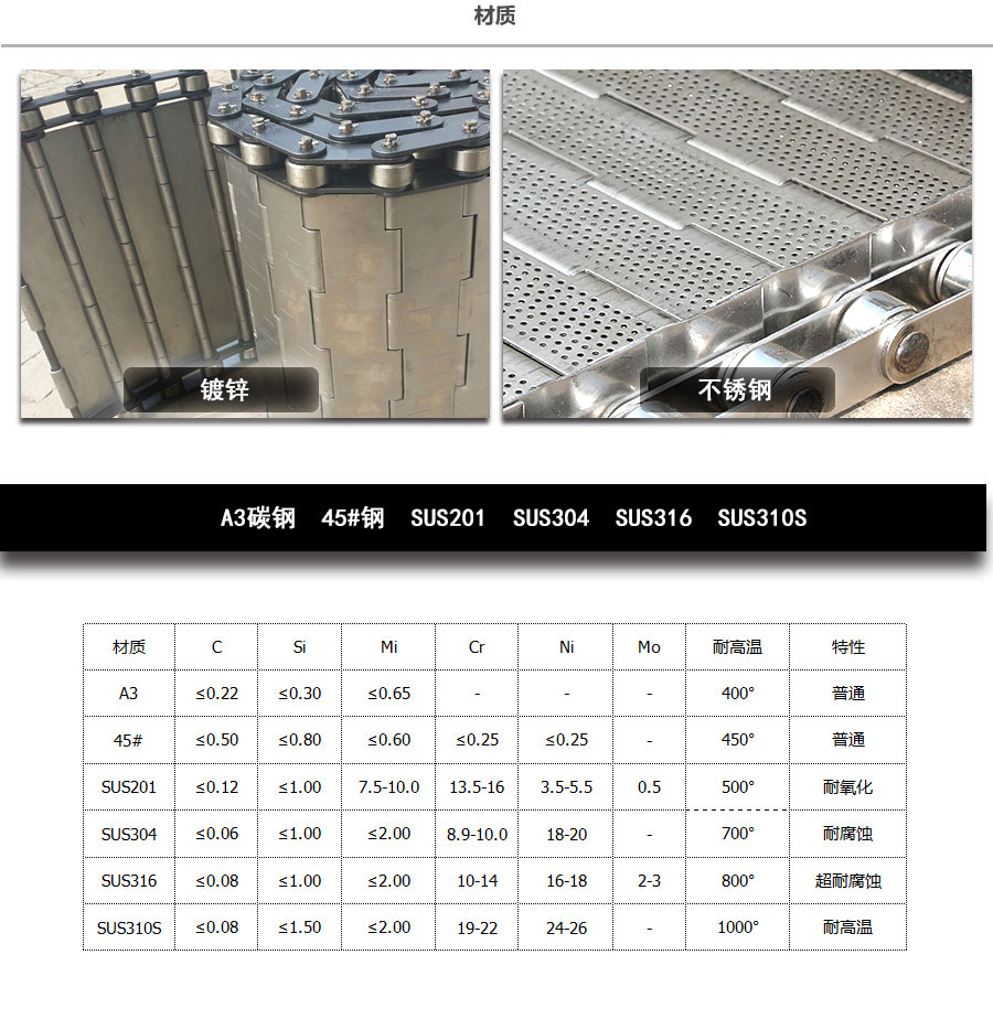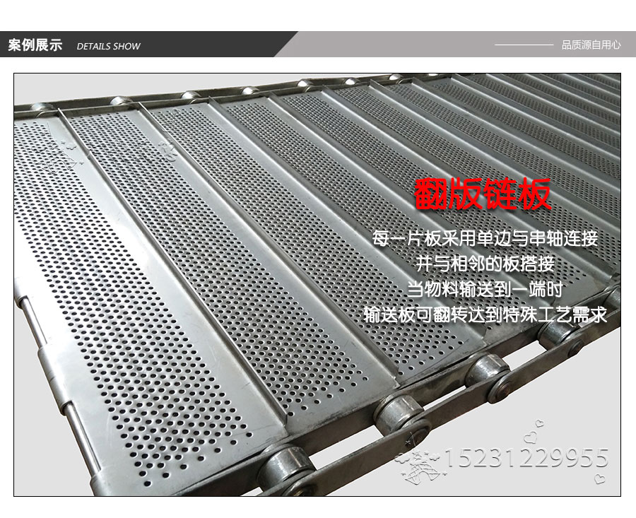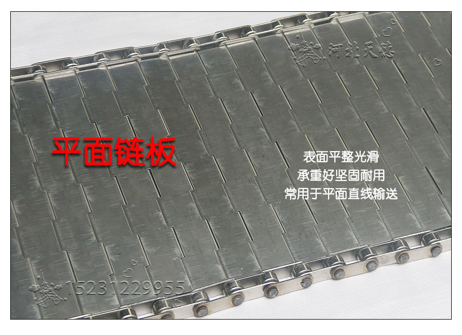 輸送鏈板非常堅(jiān)固由鏈條驅(qū)動(dòng)采用金屬板材生產(chǎn),適合用于輸送細(xì)小的高密度物件,輸送過(guò)程中運(yùn)轉(zhuǎn)平穩(wěn)安裝更換方便,成本相對(duì)較高使用壽命較長(zhǎng)用于中等和大負(fù)荷輸送。鋼板彎曲形成合葉,使用支軸將合葉和鏈條串在一起。兩端的鏈條可以使用開(kāi)口銷(xiāo)或者墊圈來(lái)固定,使用開(kāi)口銷(xiāo)方便拆卸,維護(hù)方便。
