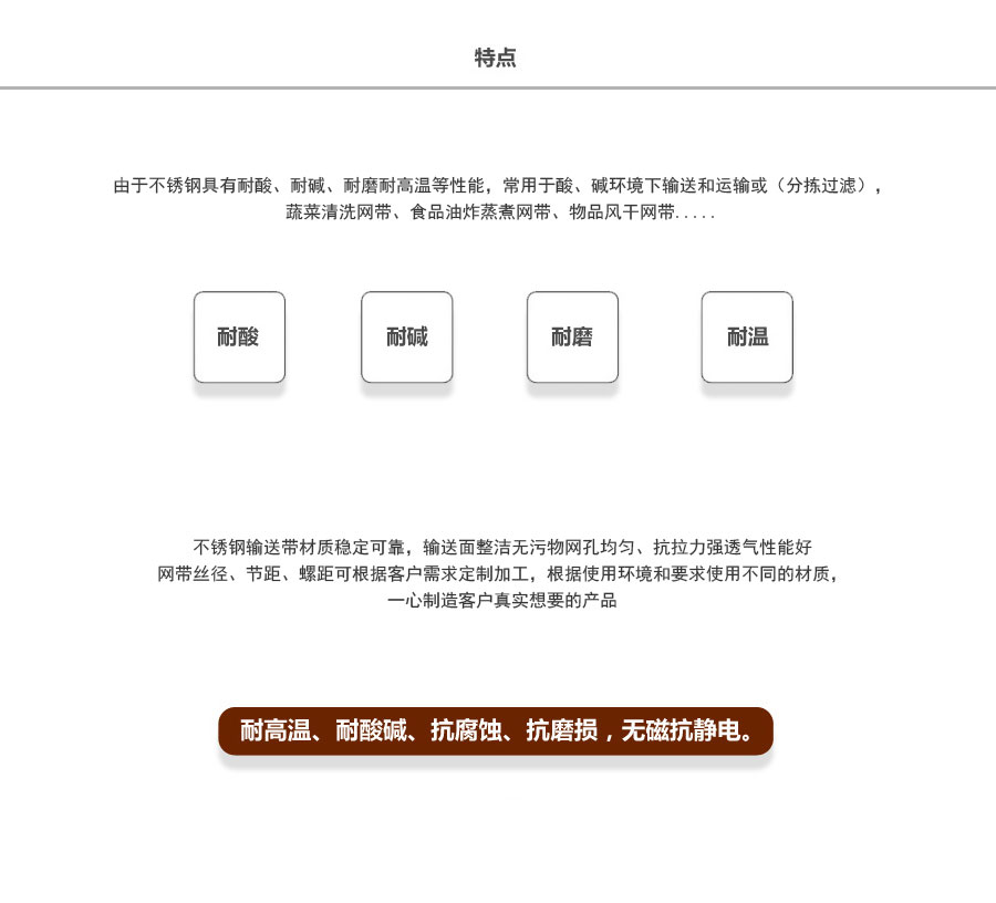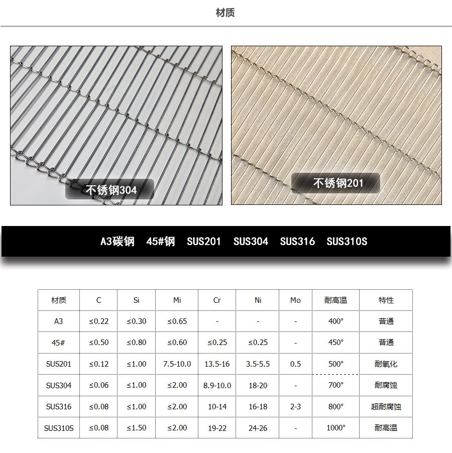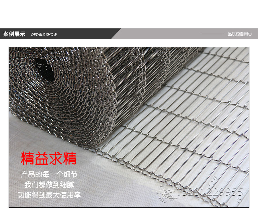 不銹鋼網(wǎng)帶屬于非標準件,我們將根據(jù)你提供的規(guī)格長寬,材質(zhì),不銹鋼絲線徑,編制結(jié)構(gòu)尺寸,支軸直徑,支軸間距,鏈條型號等數(shù)據(jù)制作.
