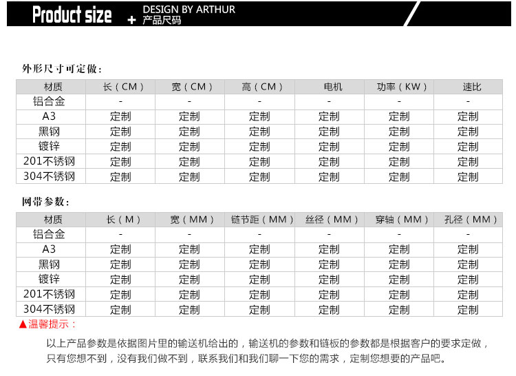 可根據(jù)客戶(hù)需求進(jìn)行設(shè)計(jì)私人訂制,如果您需要更詳細(xì)的網(wǎng)帶輸送機(jī)/食品網(wǎng)帶輸送機(jī)/網(wǎng)帶輸送線(xiàn)/網(wǎng)帶流水線(xiàn)產(chǎn)品信息,解決方案和報(bào)價(jià),請(qǐng)聯(lián)系客服,我們會(huì)為您提供熱情的服務(wù)。