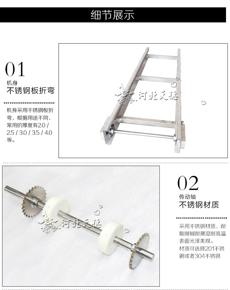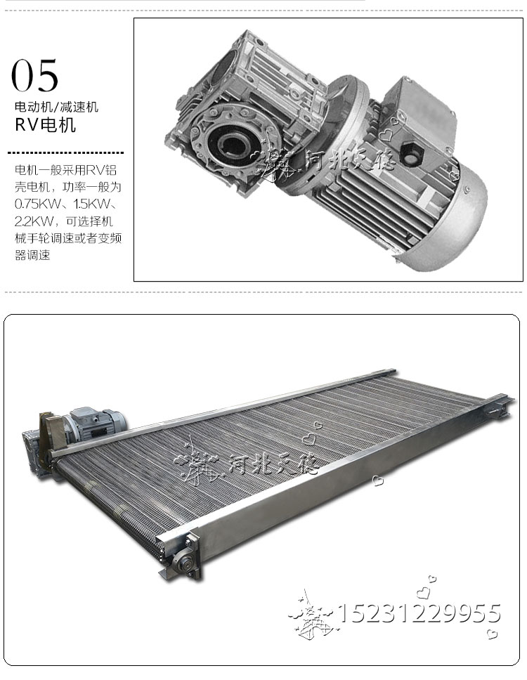 4.采用不同材質(zhì)的網(wǎng)帶可以起到不同的輸送作用并且滿(mǎn)足不同環(huán)境的需要,能夠滿(mǎn)足環(huán)境溫度零下-30度至120攝氏度之間的輸送要求。