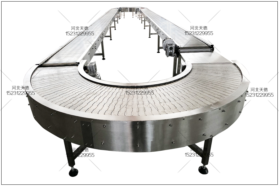 這臺(tái)設(shè)備是北京的客戶(hù)定制的,這臺(tái)鏈板輸送機(jī)流水線是由4臺(tái)鏈板輸送機(jī)組合安裝成的,有兩臺(tái)180度轉(zhuǎn)彎?rùn)C(jī)和兩條平面輸送鏈板輸送機(jī)組裝成的,整臺(tái)設(shè)備長(zhǎng)度為12米,寬度為800毫米,采用了2.5毫米后的鋼板轉(zhuǎn)彎成機(jī)身作為機(jī)架使用,采用板厚1.5毫米厚的鏈板作為輸送鏈板來(lái)輸送物品。整臺(tái)機(jī)器采用螺絲進(jìn)行拼接安裝成,可以方便的拆卸,運(yùn)輸也十分的方便。
